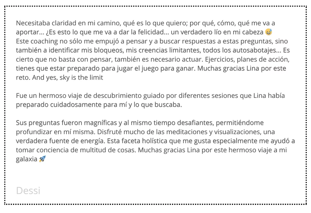 Tu satisfacción es nuestra prioridad número uno. Estamos comprometidas a brindarte un producto de alto valor que te ayude a superar todos estos bloqueos, y nuestra garantía de devolución de dinero es un testimonio de esa confianza.